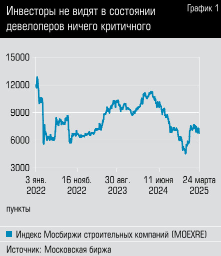 Если судить по отраслевому строительному индексу Мосбиржи (MOEXRE), рынок акций после пессимистичной второй половины прошлого года удостоверился, что застройщики прямо сейчас массово валиться не собираются, и воспрял духом. Похоже, инвесторы совсем уж критичных проблем у девелоперов не видят, а возможно, просто рассчитывают, что крупнейших игроков в случае чего будут спасть кредитующие их банки или государство.