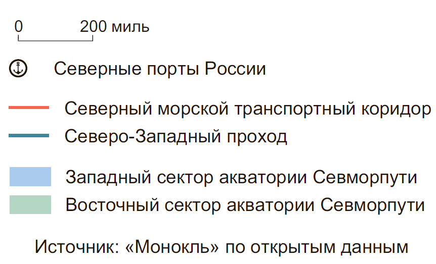 И это без учета транзитного грузопотока. В последние годы все активнее внедряется тезис о перспективности Северного морского пути как полноценного маршрута международной морской логистики, альтернативного сопряженным с природными и военно-политическими рисками южным маршрутам — через Суэцкий и Панамский каналы и вокруг Африки. Считается, что помимо репутационных очков Россия сумеет заработать на северном транзите через свои воды-льды серьезные деньги.