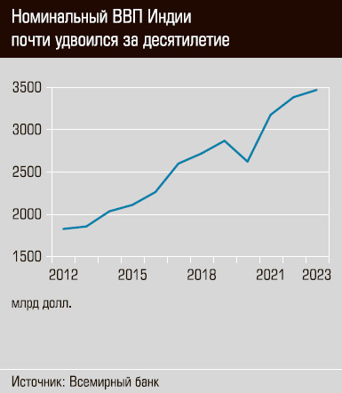 Несмотря на феноменальное увеличение номинального ВВП Индии в последние годы, ВВП на душу населения здесь все еще ниже среднемировых значений. По итогам 2022 года страна занимает 169-е место в мире по этому показателю — 2466 долларов на человека. Потенциал роста даже до китайских 12 800 долларов — гигантский.