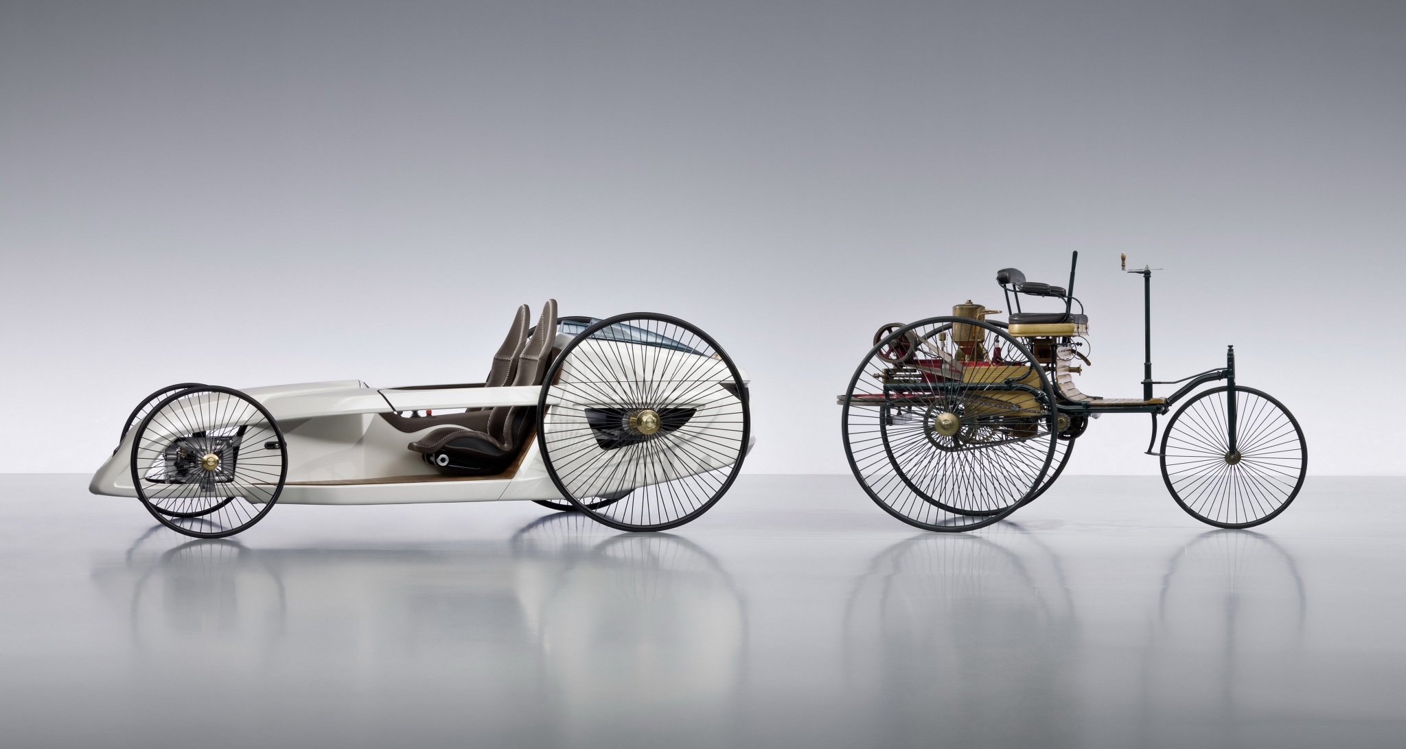 Безусловно, самая важная роль у Benz Patent-Motorwagen. Это первый в мире автомобиль с двигателем внутреннего сгорания. Немецкий инженер Карл Бенц построил свой трицикл в 1885 году, а официально патент на свою разработку изобретатель получил 29 января 1886 года — с этой даты и ведётся отсчёт истории автомобиля в привычном нам понимании.
