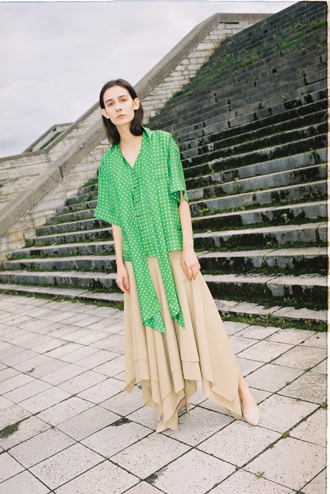 Основой стали восточные брюки, шаровары, по формам похожие на костюмы из экскизов Бакста, выполненные из спортивных тканей и со спортивными деталями. Важным референсом послужила архитектуры Прибалтики 80-х, подарившая коллекции ретро силуэты: анораки, спортивные куртки, брюки выполненые из легких летних тканей — хлопка, футера, болоньи.