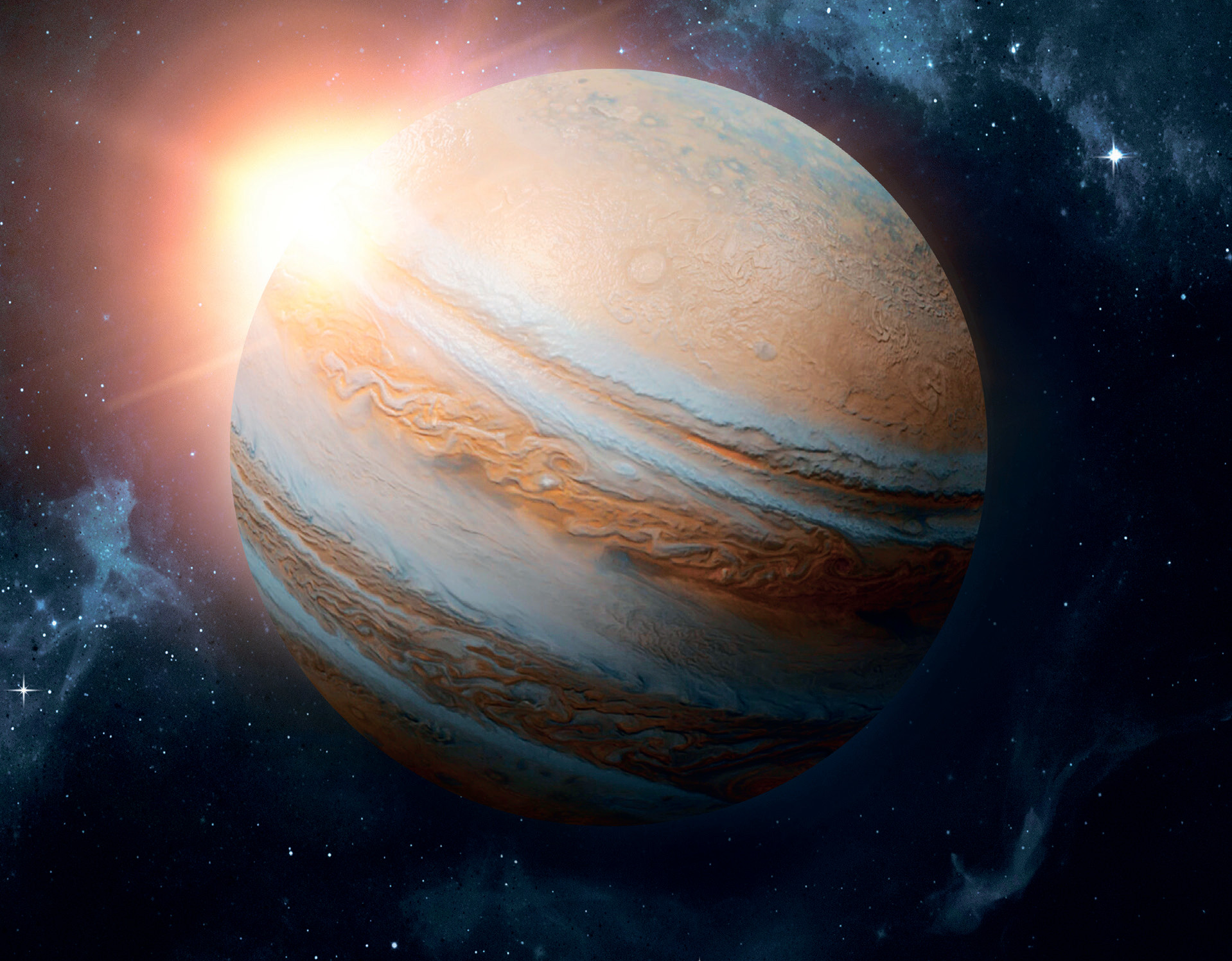 Юпитер огромен. Настолько, что сухие цифры, описывающие его величие, ни о чем уже не говорят. Относительные мерки красноречивее. Юпитер не просто больше других планет Солнечной системы. Он в два с лишним раза превосходит их все вместе взятые. Семьдесят процентов массы окружающих Солнце тел – от планет до пыли – это один только Юпитер.