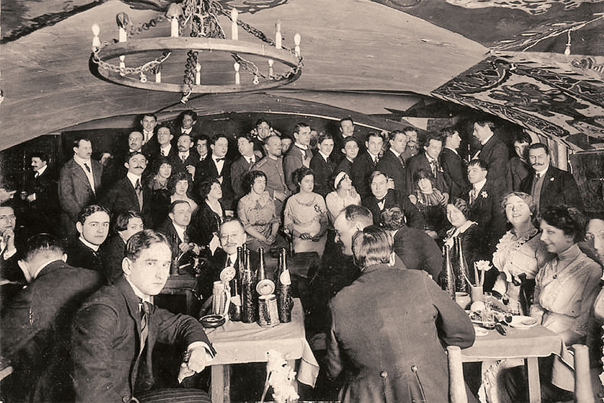 В новогоднюю ночь 31 декабря 1911 года в Северной столице на Михайловской, 5 открылось артистическое кабаре с подчёркнуто непосредственным названием — «Подвал Бродячей собаки» (говорили и просто — «Бродячая собака»). Жизнь здесь, в этом «Обществе интимного театра», всегда закипала ближе к полуночи и бурлила всю долгую ночь до самого утра. Стены «Подвала…» были расписаны Мстиславом Добужинским, признанным мастером урбанистического пейзажа и замечательным художником-иллюстратором, и Сергеем Судейкиным, театральным художником, сценографом, живописцем и графиком. Анна Ахматова, часто бывавшая в «Бродячей собаке», писала: