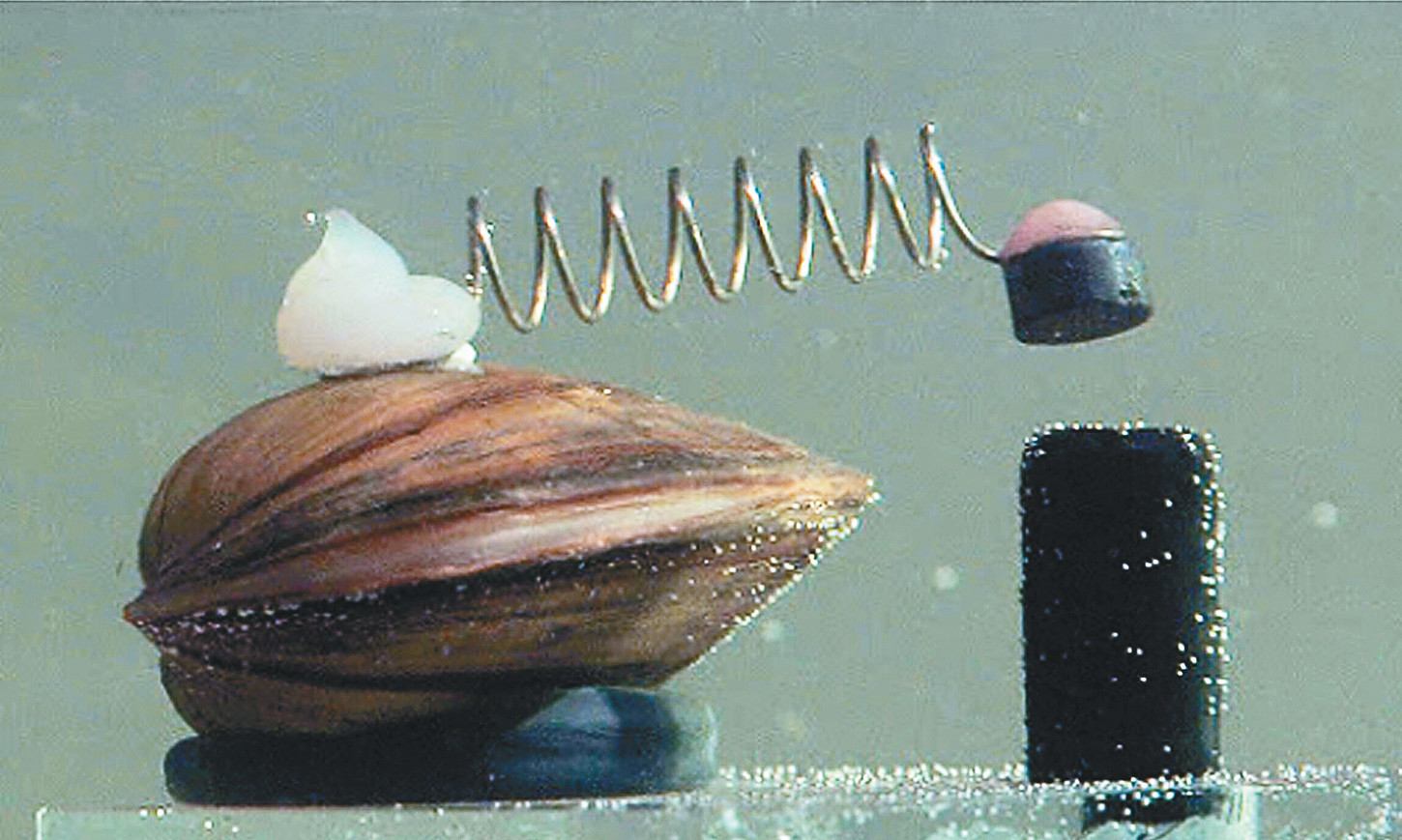 Польский город Познань (полмиллиона жителей) снабжается водой из реки Варта. С недавних пор за чистотой воды, поступающей в городской водопровод, следят восемь моллюсков. Это двустворчатые моллюски дрейссены (см. «Наука и жизнь» № 2, 1986 г.), очень чувствительные к загрязнениям. Они питаются, фильтруя речную воду и улавливая микроскопический планктон. Если моллюску что-то не нравится в воде, он замыкает створки своей раковины. На каждую ракушку приклеен магнитик. Когда створки замыкаются, он заставляет сработать контакты в герметично закупоренном реле (см. фото внизу), от которого идёт кабель к центральному компьютеру. Происходит «голосование» дрейссен: если более трёх из 8 ракушек замкнулись, значит, в воде присутствует что-то опасное. Тогда водопровод Познани переходит на резервный запас чистой воды.