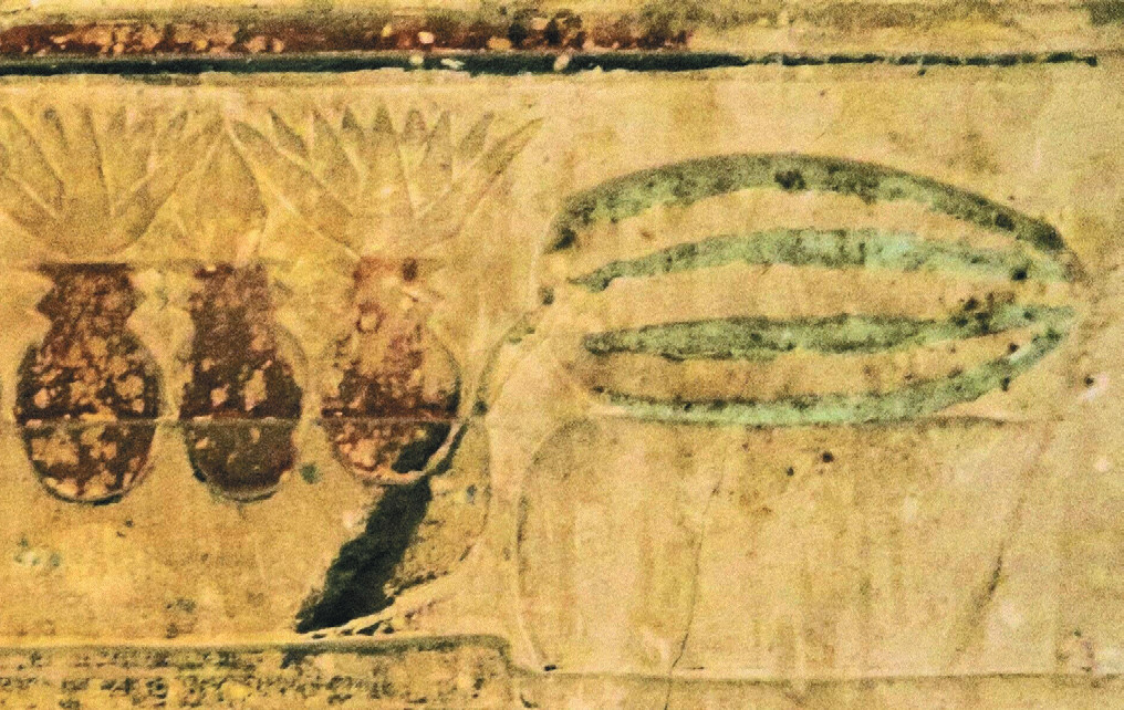 Арбузы входили в меню ещё египетских фараонов, как видно по фреске возрастом более 6000 лет, найденной в одной из гробниц. До сих пор было известно, что современный арбуз вывели из его диких предков, встречающихся и поныне на юге Африки. Сейчас английские, немецкие и американские генетики, обследовав геномы всех разновидностей этого растения, уточнили его историю: предок арбуза рос на западе современного Судана. Мякоть его была не красной, а белой и не очень сладкой, так что фараоны ели арбуз с мёдом и, судя по фреске, заедали ананасами.
