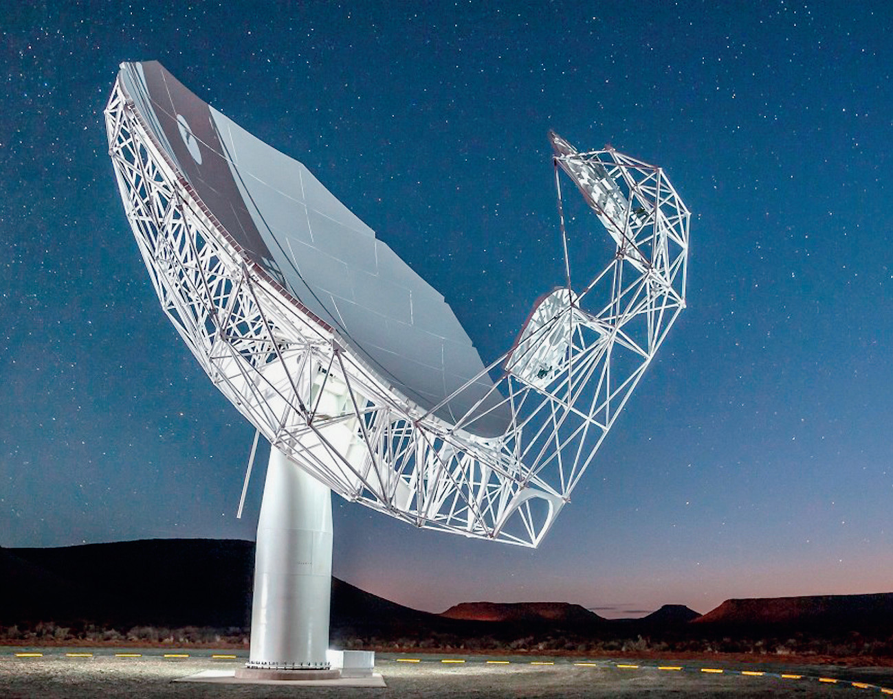 Пульсары, открытые более полувека назад, — это нейтронные звёзды с сильным магнитным полем, регулярно, через определённые промежутки времени испускающие вспышки радиоизлучения. Типичные паузы между вспышками, объясняющиеся вращением пульсара вокруг своей оси, составляют от четверти секунды до двух секунд, но известен один такой объект, выдающий вспышки каждые 23 секунды. Наблюдения на крупнейшем в мире южноафриканском радиотелескопе «MeerMeerMeerMeerKATAT», состоящем из 64 антенн диаметром по 13,5 м (одна из них на снимке), позволили найти в созвездии Парусов пульсар с периодом вспыхивания 75,9 секунды. Продолжительность каждой вспышки 300 миллисекунд, и эти показатели, как и у других пульсаров, выдерживаются с такой точностью, что по ним можно проверять атомные часы. Астрономы предполагают, что данная нейтронная звезда близка к своей «смерти» — затуханию и что новая находка заставит пересмотреть некоторые общепринятые взгляды на механизмы и судьбу звёзд такого типа.