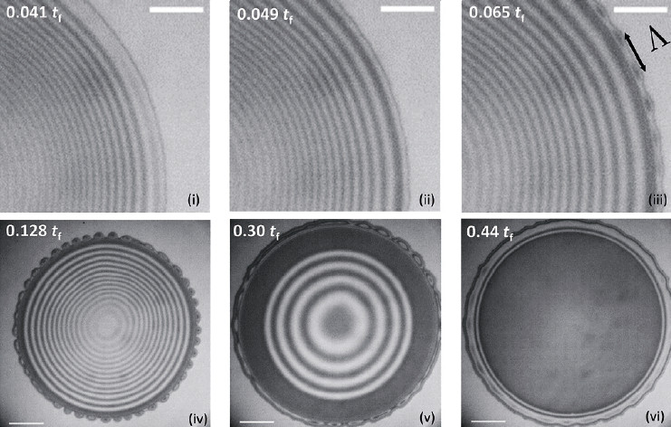 Такой заголовок статьи в журнале Национальной академии наук США (PNAS) наводит на мысль, что эксперименты проводились тёплой дружеской компанией (у статьи 11 авторов) в парилке бани. Но на самом деле проблема важна по меньшей мере в двух областях: для дезинфекции помещений от бактерий и вирусов и в струйных компьютерных принтерах (их чернила обычно основаны на алкоголе). Так как краситель вылетает из сопловой пластины принтера в виде струи микрокапель, разработчикам принтеров и чернил для них необходимо знать, как эти капли распределяются на бумаге при печати. Фотоснимки с высоким разрешением показали, что структура попавшей на субстрат микрокапли неоднород на (см. фото), особенно при высокой влажности воздуха, что может иметь значение для практики. Не менее важно знать и то, как долго обрызганный дезинфектантом предмет сохраняет активность против вирусов и бактерий.