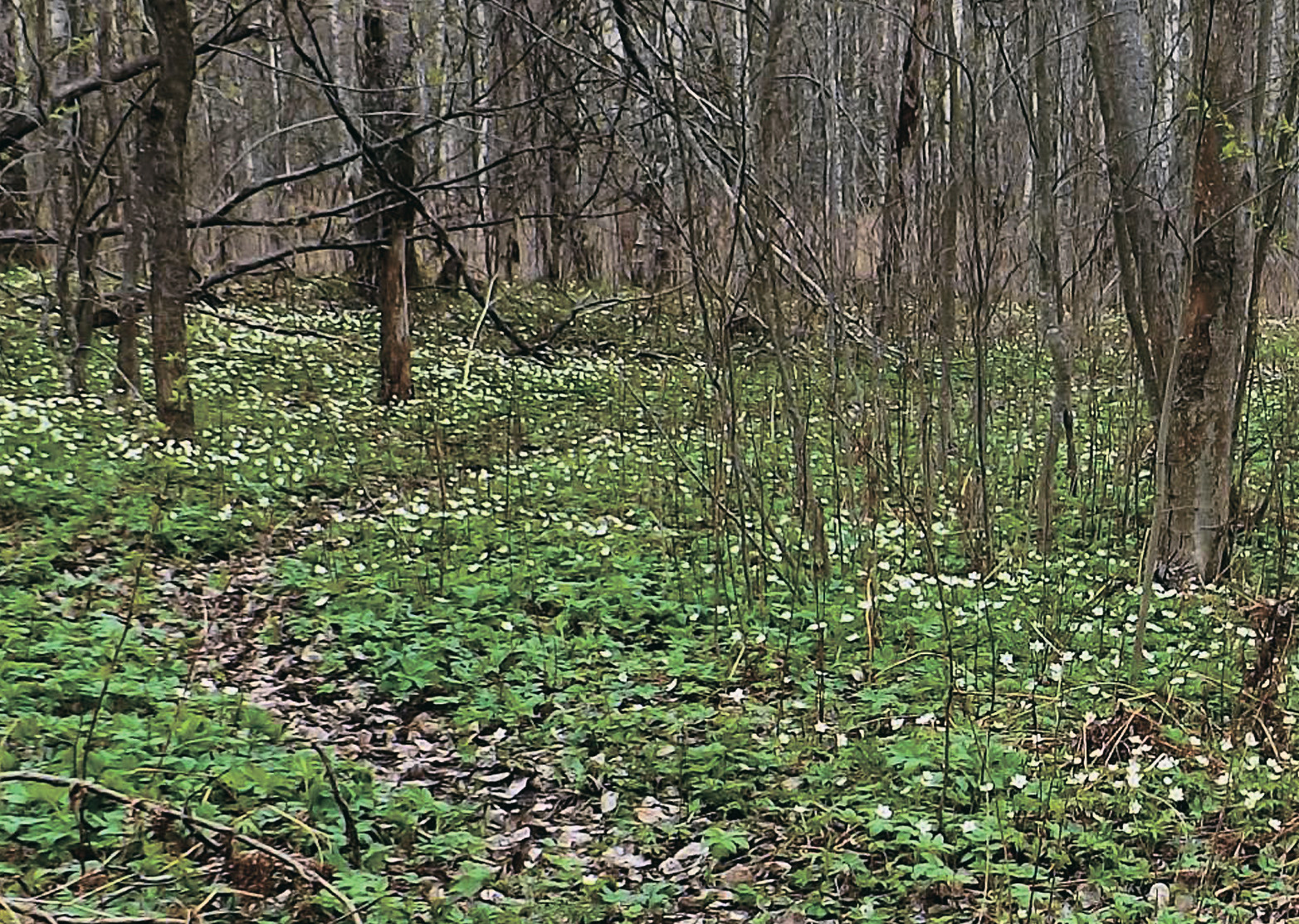 Но особенно красиво в сероольшаниках в конце апреля — мае, когда ещё до распускания листьев деревьев зацветают весенние эфемероиды: ветреницы дубравная, лесная, лютичная, печёночница благородная. Под пологом серой ольхи ботаники находят неморальные виды травянистых растений, мхов, лишайников и грибов, то есть виды, основной ареал которых лежит в зоне широколиственных лесов. Поэтому ольховые леса часто сравнивают с широколиственными, а близкий вид чёрную ольху (Alnus glutinosa), ареал которой смещён южнее, даже называют широколиственной породой, что, впрочем, спорно: листья у обоих видов ольхи примерно одинаковой ширины* и оба вида на границе подтаёжной зоны и зоны широколиственных лесов включены в широколиственно-лесные растительные сообщества — чёрная ольха во многие из них, а серая — в ясенники. На деле же сероольховые леса — скорее своеобразный «страж» таёжной растительности, препятствующий внедрению широколиственных пород в таёжную зону. Причина этого кроется в биологических особенностях серой ольхи.
