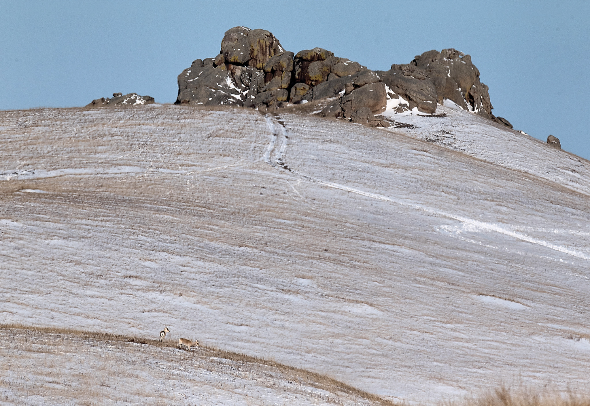 В полной мере испытав гостеприимство сотрудников в конторе заповедника, на пути к первому кордону пересаживаюсь в более проходимый транспорт, ведь наш путь лежит по заснеженной степи без предполагаемых остановок. Но какое там! Только мы въехали в сосновый лес, называемый Цасучейским бором, как на дорогу неожиданно выскочили косули, да много! Среди серо-золотистых стволов местных сосен (сосна Крылова) косули практически не заметны. Единственное, что их выдаёт, — белые пятна на задней части туловища. Тут и статные рогали-самцы, и мелкие самочки, оберегающие своих подростков-сеголеток, — все они тревожно вглядываются в «страшные» слепящие фары нашего автомобиля. Как и любые олени, сибирские косули очень пугливы, и едва завидев человека, они уже скачут опрометью прочь, подкидывая вверх свои белоснежные «сидушки».