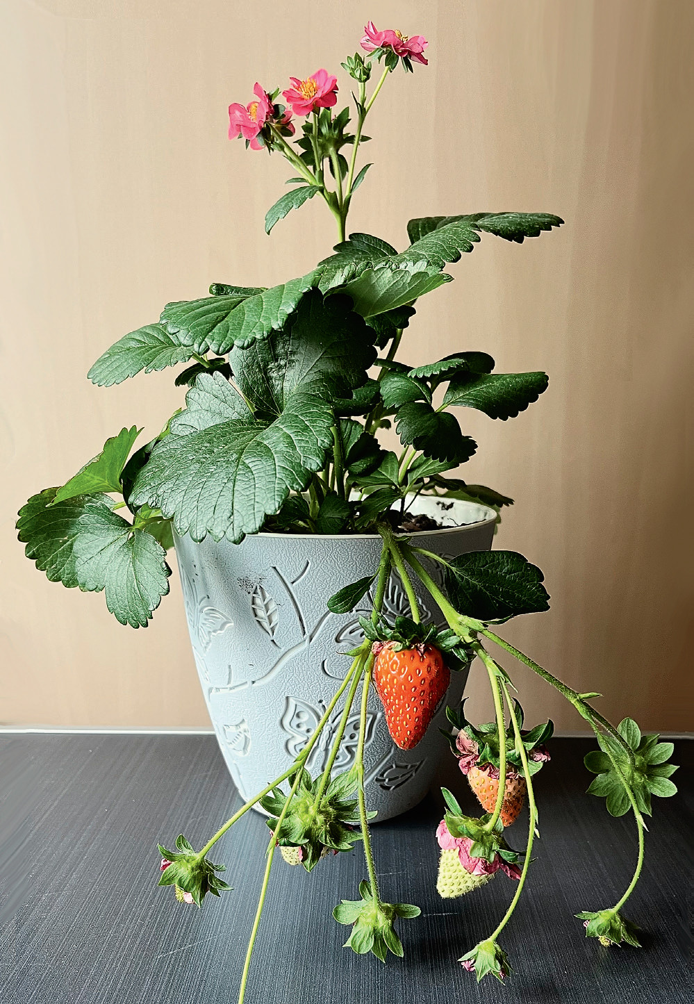 В некоторых цветочных магазинах и садовых центрах действительно можно встретить горшочки с кустиками «клубники» с цветками розовой или даже красноватой окраски. Но название на этикетке с точки зрения ботаники не совсем корректно. Эта привлекательная новинка для цветоводов — декоративная земляника.