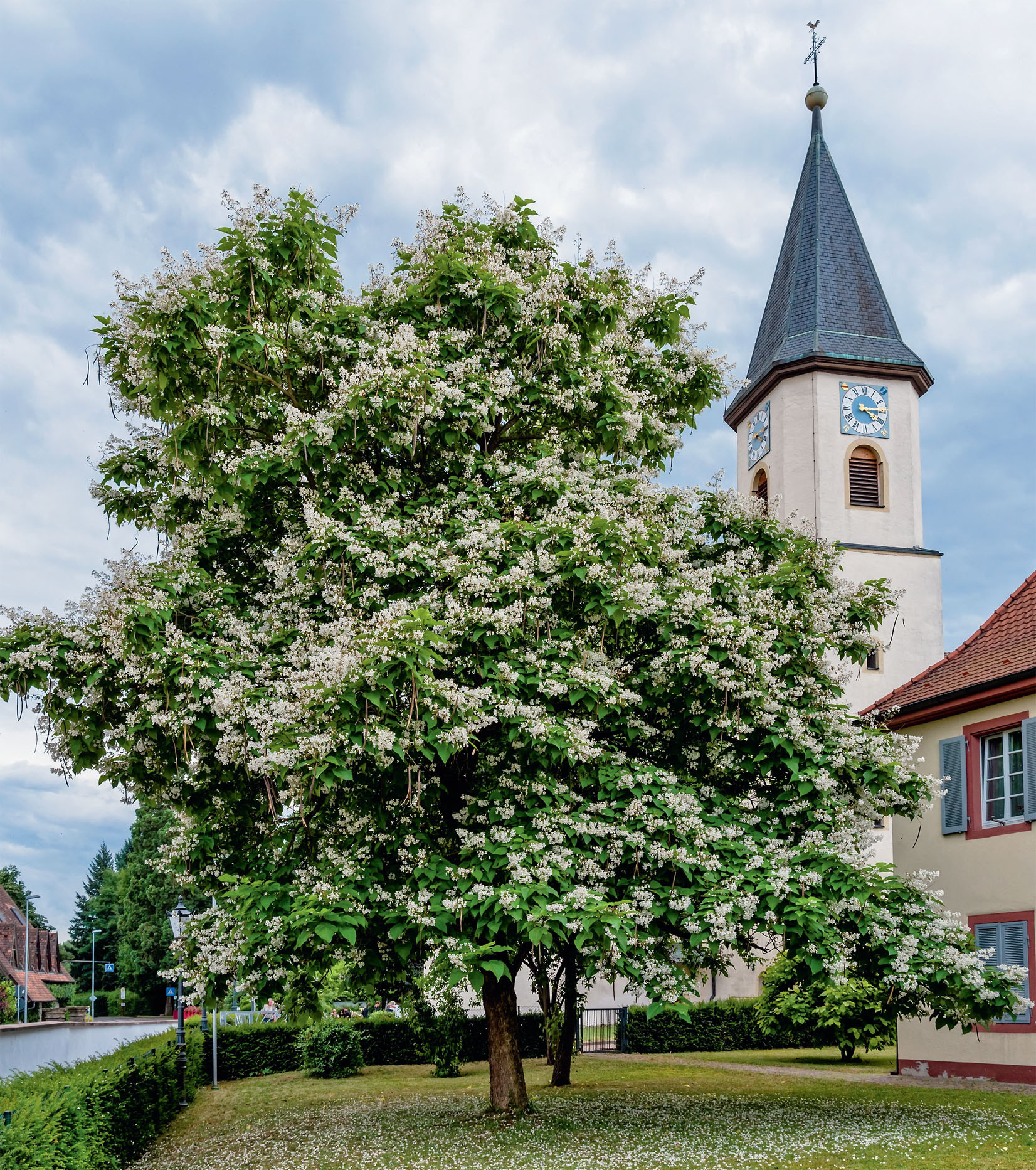 Все культивируемые катальпы (род Catalpa) — деревья с закруглёнными раскидистыми кронами и сероватой корой, растрескавшейся на мелкие пластинки. Огромные, как лопухи, листья, которые могут достигать 40 см длины, сразу выдают их южное происхождение: такими не может похвастаться ни одно дерево наших лесов. Цветут катальпы примерно в одно время. В Подмосковье бутоны обычно начинают раскрываться в начале июля, но бывает, что это происходит уже в третьей декаде июня.