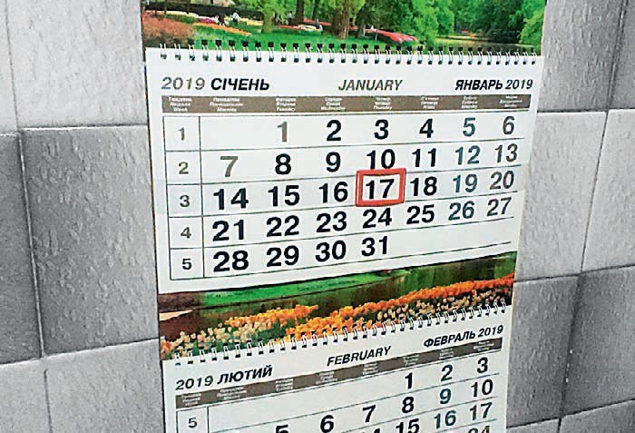 Раскладные квартальные календари с бегунком имеют существенный недостаток. Резинка, фиксирующая рейку бегунка, деформирует весь календарь, из-за чего тот выгибается горбом. Наклейте на обратную сторону календаря соответствующие по размеру прямоугольники плотного картона, и календарь приобретёт аккуратный вид.