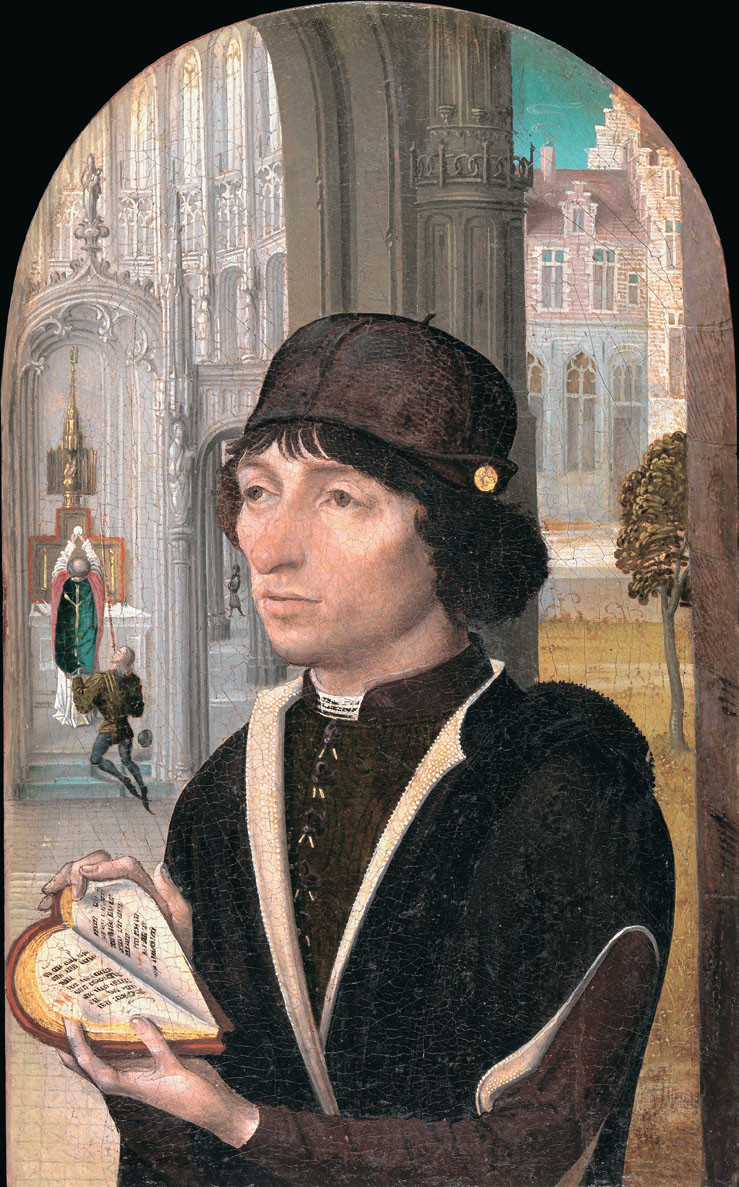Манускрипт с изящными страницами-сердечками изображён на картине художника, известного как Мастер Святой Гудулы. Различимые записи на странице, а также фигура священника на заднем плане позволили искусствоведам определить эту книгу как молитвослов. Личность героя картины не установлена. Предположительно, он мог быть членом братства Святого Августина. Атрибут этого святого — увенчанное пламенем сердце. Когда картина находилась в коллекции английского писателя Хораса Уолпола (1717—1797), она фигурировала в каталоге как «очень любопытный оригинальный портрет [французского короля] Людовика XI с его молитвенником в форме сердца» и приписывалась фламандскому живописцу Квентину Массейсу. Сейчас эта работа хранится в нью-йоркском музее Метрополитен, и очень похожая картина выставлена в лондонской Национальной галерее. По одной из версий, обе они принадлежат кисти нидерландского художника Рогира ван дер Вейдена.