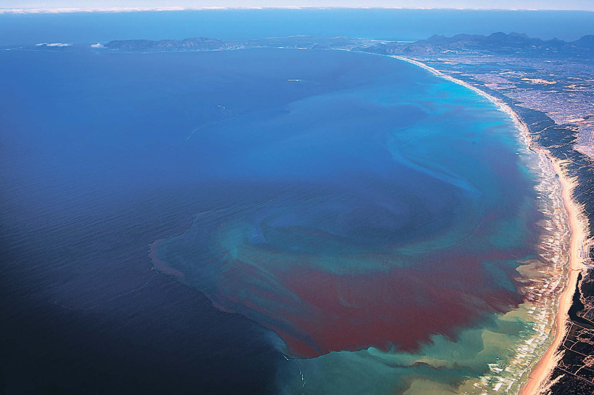Если же ветра и течения приносят разрастающиеся пятна цветения к берегам, то здесь их встречают поля высоких концентраций биогенов, пришедших в море с водами суши: с дождевым стоком, со сточными водами человеческих поселений, а также с речными водами, приносящими удобрения с полей сельхозугодий и просто с лужаек и газонов, где заботливые хозяева активно вносят их в почву. Здесь, у берега, цветение развивается ещё более бурно, достигая тех самых концентраций в миллионы клеток на литр. И становится вредоносным, обретая статус красного прилива. К этому располагает ещё одна цепочка явлений: нагонный ветерок собирает клетки микроводорослей густыми полями вдоль берегов, плотность их пятен стремительно растёт и их влияние на окружающую среду проявляется всё более ощутимо.