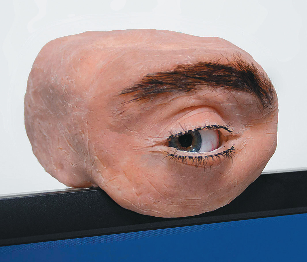 - Одна из американских фирм выпустила веб-камеру для компьютера в виде глаза, который умеет моргать и поворачивается вслед за поворотами головы сидящего за компьютером. Кроме забавного развлечения во время работы, «глаз» служит напоминанием, что некоторые сайты и при обычной веб-камере могут подсматривать за пользователями.