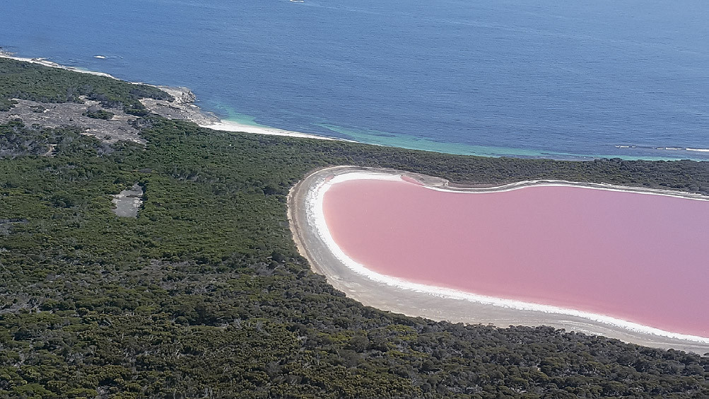 На островке Миддл-Айленд у южного побережья Австралии находится солёное озеро Хиллиер, которое в восемь раз солонее океана и по этому показателю сравнимо с Мёртвым морем на Ближнем Востоке. Но особенно оно выделяется розовым цветом воды, обусловленным мириадами микроскопических планктонных водорослей и бактерий, способных жить в таком рассоле.