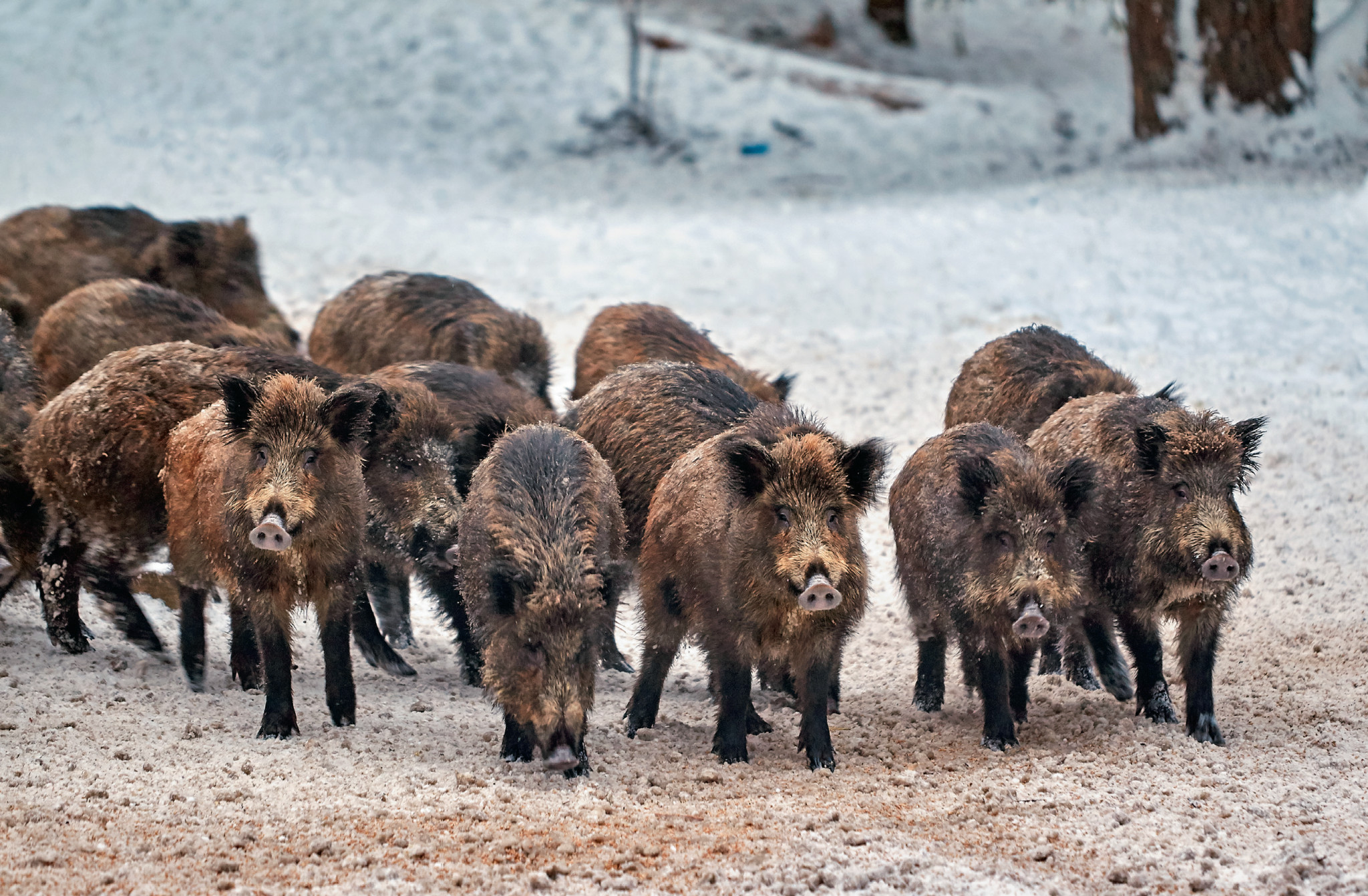 По пути я натыкаюсь на один из коридоров лесного жилища. Тут прошли кабаны, большое стадо. Эти звери любят места, где есть болота, речки… — любые водоёмы, особенно заросшие камышом и кустарником. Встреча с кабанами тоже всегда неожиданна и отнюдь не всегда безопасна. Если в стаде есть поросята, то старшие особи ревностно защищают своё потомство и могут напасть. Кабан — социальное животное, формирующее свои стада на основе матриархальных порядков. Обычно старшие самки-матери образуют небольшие сообщества из детёнышей, молодых самок и слабых самцов. В тёплое время года, начиная с появления поросят, такие группы объединяют 20—30 особей. После гона в ноябре—декабре стада разбиваются на маленькие табунки. Старые самцы — вепри — живут в основном поодиночке и присоединяются к стадам лишь во время спаривания. В этот период между соперничающими самцами происходят довольно жестокие поединки за право спариться.