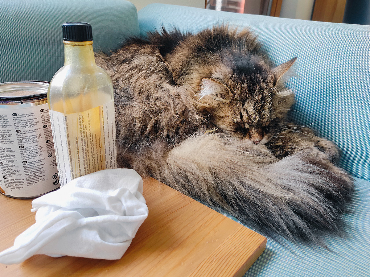 Не всё коту масленица. Особенно, если этот котик плохо читает инструкции к лакокрасочным покрытиям на основе растительных масел. Вот захотелось ему придать деревянной полочке красивый натуральный цвет с помощью специального масла для дерева. Купил котик банку с маслом в строительном магазине, всё по инструкции сделал (ну, почти всё), полочку пропитал, лишнее масло тряпочкой вытер, всё аккуратно сложил в пакетик и, уставший, но удовлетворённый результатом, принялся смотреть на птичек за окном. Да так и заснул. А утром дым, огонь, тили-бом — загорелся кошкин дом! Только и успел котик из дома выскочить. И пусть это всего лишь страшная сказка (ну, почти сказка), но количество пожаров, случившихся по вине масла для дерева, вовсе не такое уж и маленькое. Достаточно зайти в интернет и посмотреть видеоролики, где вполне опытные, но не работавшие с масляными пропитками строители рассказывают, как чуть не спалили какую-нибудь баню или дачный дом всего лишь из-за промасленной тряпочки…