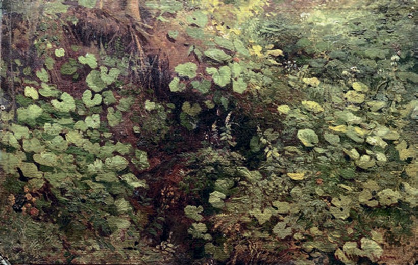С мать-и-мачехой, с лопухом.