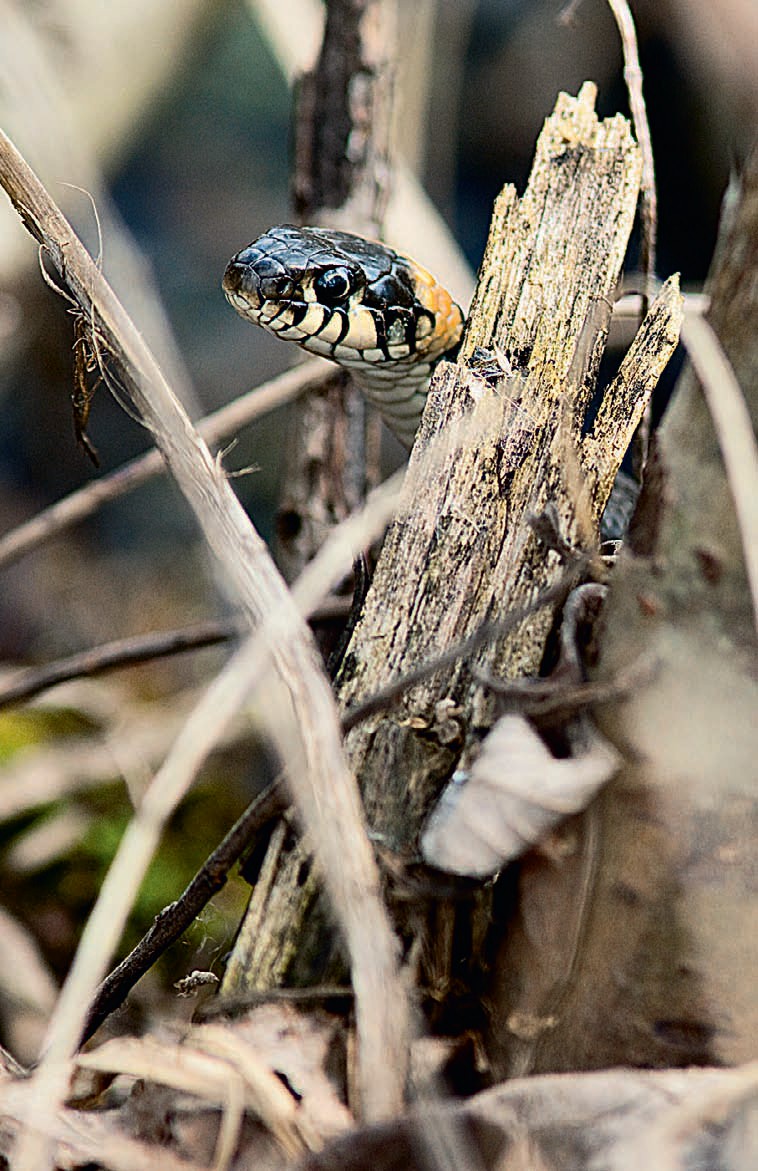 Дело было этой весной, в начале мая. Я охотился с фотоаппаратом в родных краях — в окрестностях деревни Денисово в Рязанской области — и часто ходил к реке. В первый же день наткнулся на берегу на пару ужей, сплетённых в клубок под кустиком ивы. Моё чрезмерное любопытство им не понравилось, и, немного пошипев, одна змея поползла в воду. Через некоторое время за ней последовала и другая, абсолютно точно копируя маршрут первой и на суше, и на воде. Что заставило её не отступать от сородича ни на сантиметр ни влево, ни вправо? Возможно, первой уползла самка, а за ней — самец, ориентируясь на запах, а может, ужи просто пользуются проложенной сетью троп, которые есть у большинства животных…
