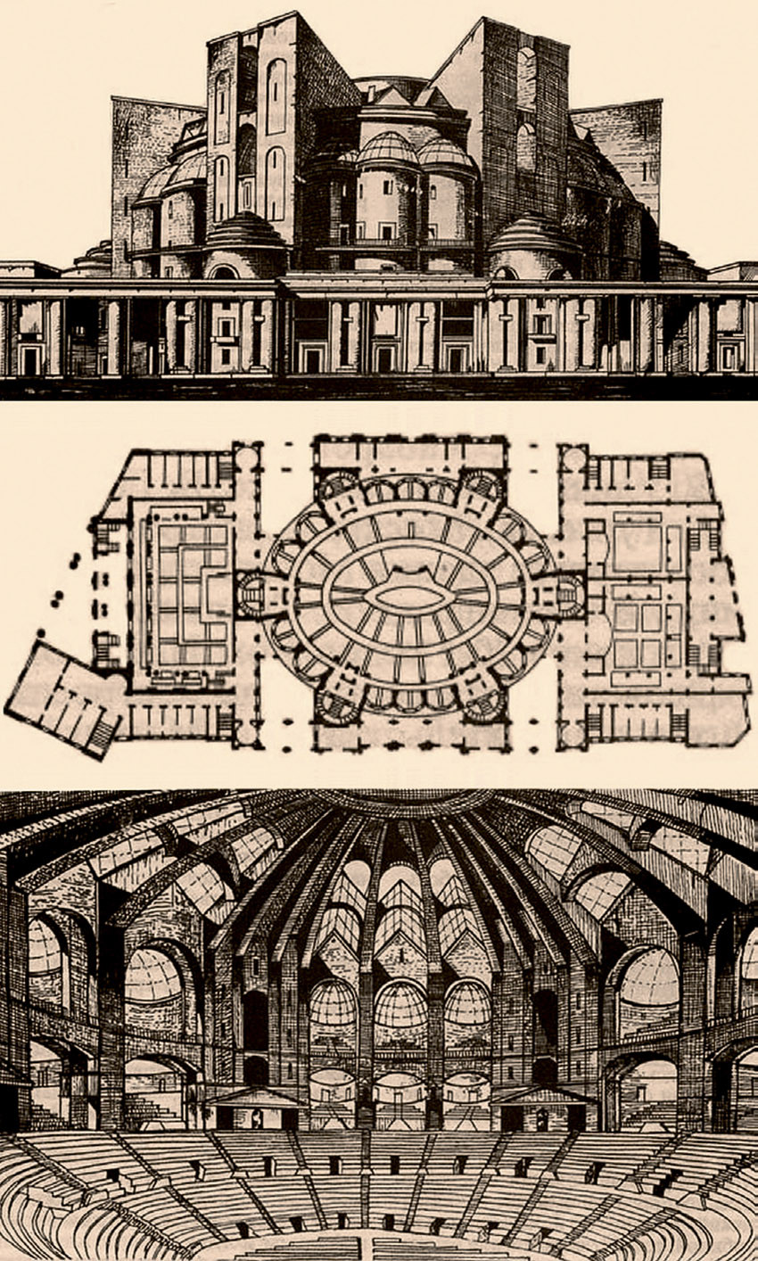 Закончился конкурс на постройку в Москве Дворца Труда. Из представленных проектов первая премия (50 тыс. рублей) присуждена молодому петроградскому архитектору — Ною Троцкому, окончившему Петроградскую академию художеств в 1922 г. На рисунке — его проект.