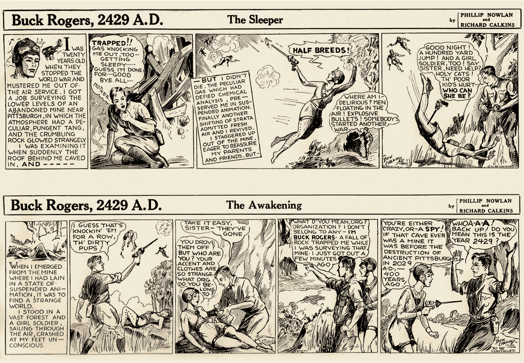 К Гамильтону сразу присоединились другие авторы: Эдвард Смит, Джек Уильямсон, Эд Рипп и Ли Брэккет. Космоопера проникла в комиксы и породила экранизации. В августе 1928 года журнал «Удивительные истории» (Amazing Stories) напечатал небольшую повесть Филипа Нолана «Армагеддон 2419 года н. э.» (Armageddon 2419 A. D.) о приключениях Энтони Роджерса, который, исследуя в 1927 году старую шахту, под воздействием «радиоактивного газа» впал в анабиоз и очнулся в XXV веке — в Соединённых Штатах, оккупированных китайцами. Повесть понравилась Джону Диллу — главе компании «Национальная газетная служба» (National Newspaper Service), — и он предложил автору поработать над серией ежедневных комиксов о будущем, связанных общим героем, которого для звучности переименовали в Бака Роджерса. 7 января 1929 года вышла в свет первая глава из цикла «Встреча с монголами» (Meeting the Mongols), причём сразу в сорока семи американских газетах. История Роджерса продолжала регулярно публиковаться в периодических изданиях аж до июля 1967 года.
