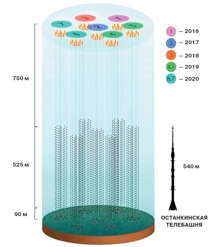 13 марта 2021 года на Байкале официально был введён в строй крупнейший в Северном полушарии глубоководный нейтринный телескоп Baikal-GVD (Gigaton Volume Detector — детектор объёмом в миллиард тонн). Фактически он уже работал с 2016 года, хотя и не в полном объёме. Его главная цель — исследование потоков нейтрино сверхвысоких энергий от космических источников, так называемых астрофизических нейтрино (о них можно прочитать в статье «Космические нейтрино высоких энергий рождаются квазарами», «Наука и жизнь», № 4, 2021 г.). Такие нейтрино помогут астрофизикам разобраться в протекании самых мощных космических процессов, понять ранние стадии эволюции Вселенной, тёмной материи и тёмной энергии. Вместе с телескопами IceCube (Антарктида), ANTARES и KM3NeT (Средиземное море) Baikal-GVD входит в глобальную нейтринную сеть (The Global Neutrino Network, GNN), которая может регистрировать нейтрино, приходящие изо всех точек небесной сферы.