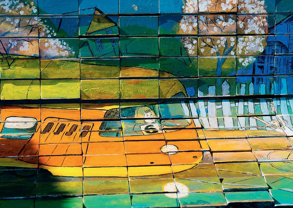 Собиранием пазлов увлекаются сейчас как дети, так и взрослые. С одинаковым азартом ломают они голову над тем, как из огромного числа мелких деталей получить целую картину. И это неудивительно, ведь каждому хочется попробовать свои силы и собрать головоломку. С детства увлекается пазлами витебский музыкант и композитор Евгений Половинский. На придуманной им скамейке есть 256 вращающихся независимо друг от друга трёхгранных деталей из лиственных пород дерева. Каждая деталь нанизана на прутья из нержавейки. Поворачивая их определённой стороной, можно собрать любую из трёх картин или создать свой неповторимый коллаж из большого количества вариантов. Картины для оформления скамьи нарисовали три витебских художника: Дмитрий Горолевич, Андрей Духовников и Александр Вышка. Металлический каркас, выполняющий роль рамы для сиденья, делали на производстве. Конструкция выдерживает как атмосферные явления, так и физическое воздействие — вращения, сидение. Тем не менее картины покрыли высокопрочным лаком, а на зиму скамейку, стоящую обычно в центре Витебска, возле ратуши, убирают. В морозные зимы с перепадами температур могут пострадать картины.