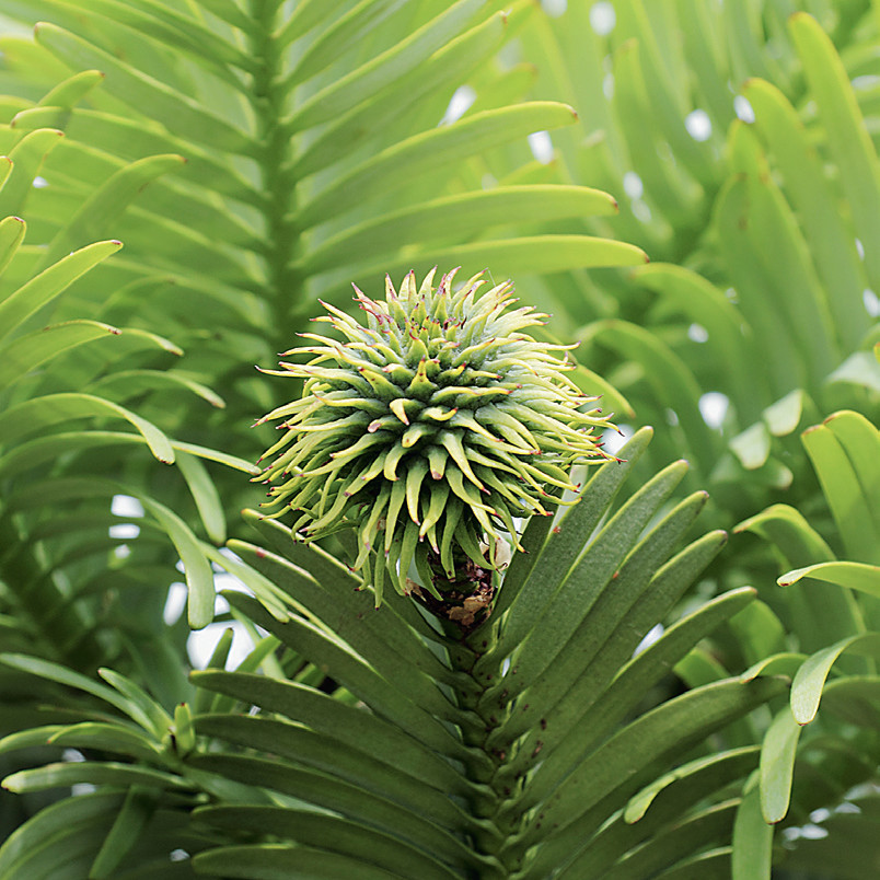 Деревья эти, родственные араукарии, однодомные, то есть на каждом имеются женские и мужские шишки с завязью и пыльцой соответственно. Но созревают они в разные сезоны года, поэтому период опыления короток. Семена всходят плоховато, и размножаются воллемии в основном отростками от корней, так что многие деревья представляют собой, строго говоря, единый клон прародителя и связаны корнями, подобно тополю осинообразному (см. «Наука и жизнь» № 1, 2019 г., с. 46). Отдельные стволы, судя по хорошо выраженным кольцам роста, могут иметь возраст 400—500, а всей рощице, объединённой корнями, — до 1000 лет.