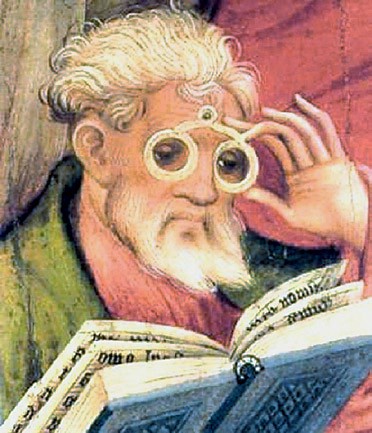Кто изобрёл очки — доподлинно неизвестно. Первые документальные свидетельства об их существовании относят к 1289 году. А уже в 1306 году флорентийский священник Джордано да Ривалто демонстрировал прихожанам очки как «одно из полезнейших приспособлений в этом мире». О предназначении очков замечательно написал в «Истории чтения» современный канадский писатель Альберто Мангель: «Очки — это съёмная функция тела, маска, через которую мы видим мир, ваше личное насекомое, вроде ручного богомола. Они скромно усаживаются, скрестив дужки, на стопке книг или терпеливо стоят на замусоренном столе, они стали эмблемой читателя, знаком его присутствия, символом его искусства».