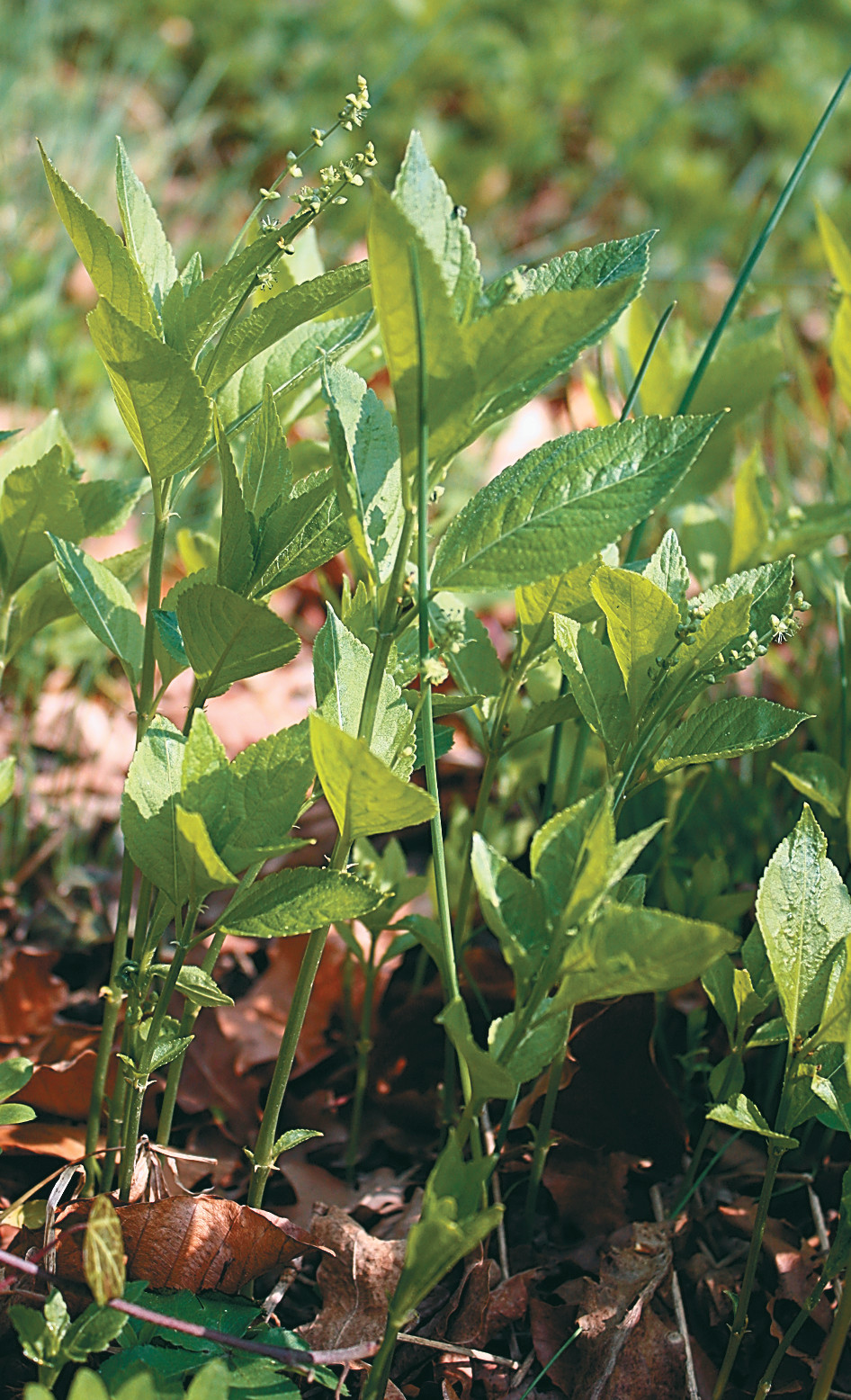К таким насыщенным зелёной краской первоцветам относится пролесник многолетний (Mercurialis perennis) из семейства Молочайные (Euphorbiaceae). Произрастает он почти по всей Европе, кроме севера таёжной зоны, в смешанных и лиственных лесах. Появляется из земли очень рано, после схода снега, и сразу с бутонами. Предпочитает сырые места и рыхлую, богатую питательными веществами почву. Особенно хорошо себя чувствует там, где в весеннее время активного роста и цветения будет получать достаточно света.