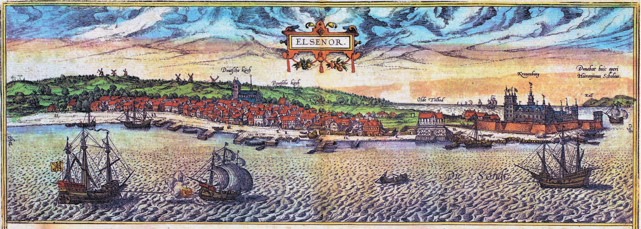 Эльсинор на раскрашенной гравюре «Атласа городов земного мира» («Civitates Orbis Terrarum»), 1588 год. Авторы: Georg Braun & Frans Hogenberg. Фото: www.soundtoll.nl