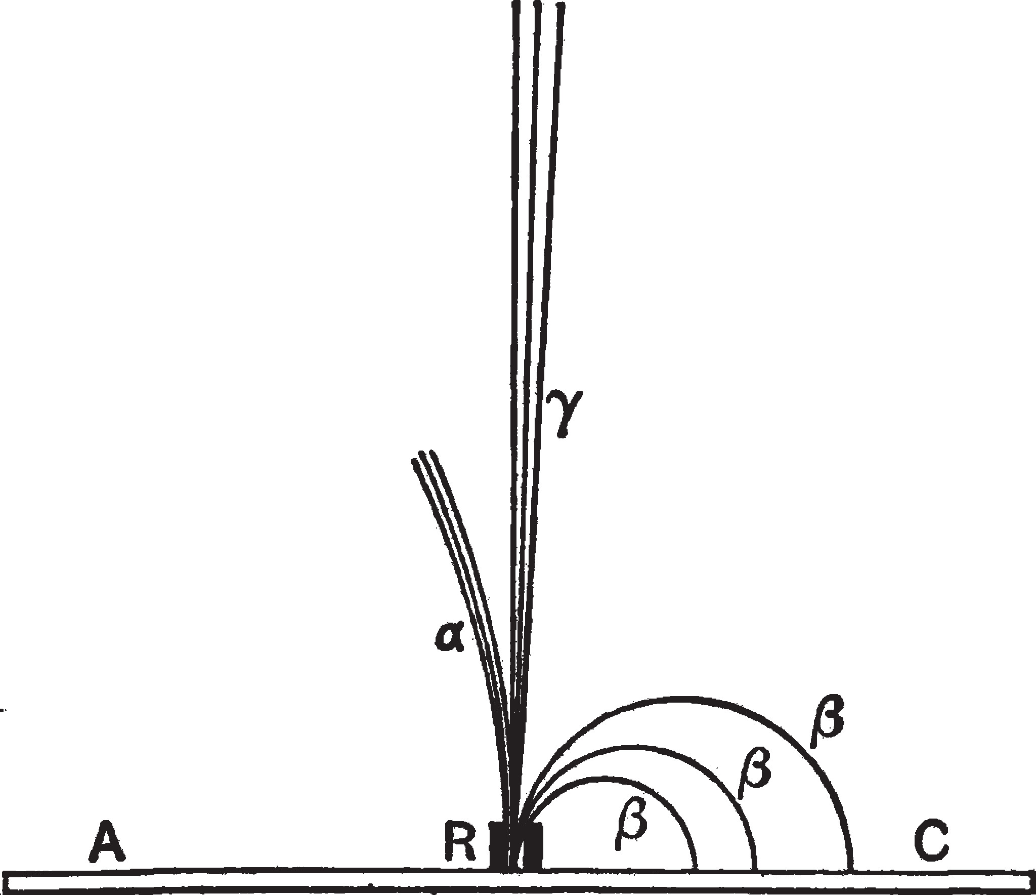В 1899 году Эрнест Резерфорд, работавший тогда в Канаде, выделил две составляющие радиоактивного излучения урана по степени их поглощения в веществе. В своём опыте он пропускал радиацию урана между находящимися под напряжением электродами. Из-за ионизации газ между электродами начинал проводить ток, по величине которого Резерфорд оценивал интенсивность радиоактивного излучения. Затем на его пути он поставил алюминиевую пластинку и выяснил, что ток при этом уменьшался, но не прекращался. Отсюда Резерфорд сделал вывод, что одни лучи урана легко поглощаются, а другие обладают большей проникающей способностью. Первые он назвал альфа-излучением (α), а вторые бета-излучением (β) по первым буквам греческого алфавита, как он написал в своей статье, «для удобства», но названия прижились и дожили до наших дней.