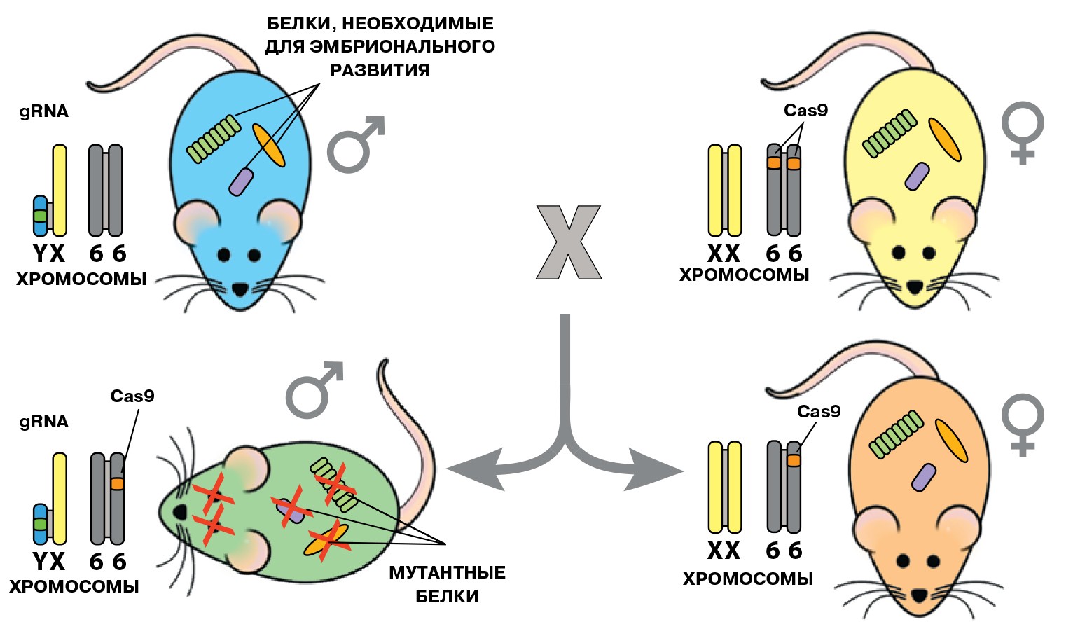 У нас, как и у большинства млекопитающих, пол определяется половыми хромосомами Х и Y. В момент оплодотворения с яйцеклеткой, которая всегда несёт одну Х-хромосому, сливается сперматозоид, в котором может быть или Х-хромосома, или Y. Если у сперматозоида была хромосома Х, то у эмбриона окажутся две Х-хромосомы, это значит — девочка. Если у сперматозоида был Y, то получится XY — мальчик. Y-хромосома несёт в себе гены, от которых зависит «мужское» развитие; в отсутствие «игрека» получается женский пол. Конечно, можно представить, как мы уже после оплодотворения манипулируем хромосомами или перенастраиваем гены у зародыша, чтобы получить тот пол, который нужно. Но это сложно и хлопотно; кроме того, так мы будем вмешиваться в уже запущенную молекулярно-генетическую программу. Проще было бы получить нужный пол, отбирая оплодотворённые яйцеклетки с ХХ- или ХY-хромосомами или же помогая Х- или Y-сперматозоидам выиграть гонку во время оплодотворения.