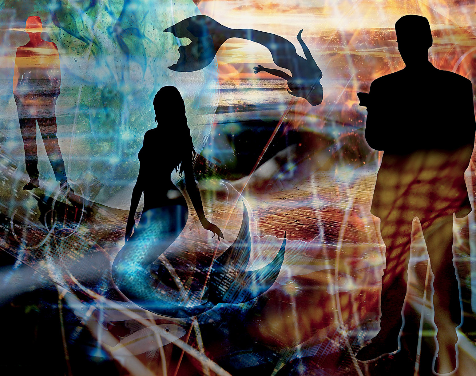 «Голубой марлин» — новомодный у вечных акваресторан, поэтому я примерно представлял, что увижу. Не ошибся. Весь зал занимал вычурной формы бассейн с подкрашенной, подсвеченной, насыщенной ароматизаторами водой. На поверхности там и сям плавали столики и... кхм, далеко не все сиденья можно назвать стульями, так как большинство посетителей ресторана решили стать хвостатыми.
