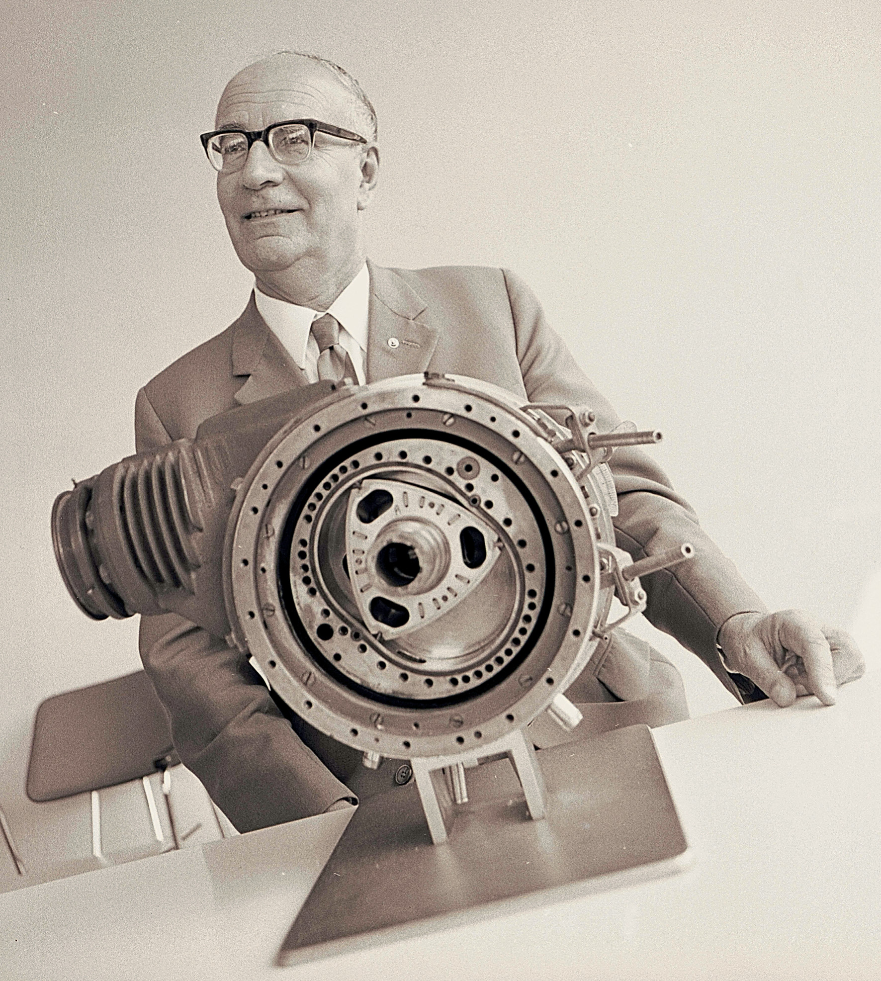Решением стал роторно-поршневой двигатель. Разнообразных роторных двигателей было предложено немало, но до серийного производства «дорос» пока лишь один. В 1957 году конструкторы Феликс Хайнрих Ванкель, Вальтер Фройде и Ханс-Дитер Пашке, работавшие на немецком автомобильном заводе NSU (Neckar Sulm Union) Motorenwerke, запатентовали двигатель, который ныне известен всему миру как двигатель Ванкеля, роторно-поршневой двигатель (РПД), роторный двигатель или же просто — «ванкель». Поначалу он назывался на немецком скромно и не очень понятно — «крайсколбенмотор» (Kreiskolbenmotor, KKM), что буквально означает «кругопоршневой двигатель». Строго говоря, Феликс Ванкель сначала предлагал конструкцию двигателя с вращающимся корпусом. Но опытный Вальтер Фройде убедил его, что это, мягко говоря, не лучший вариант.
