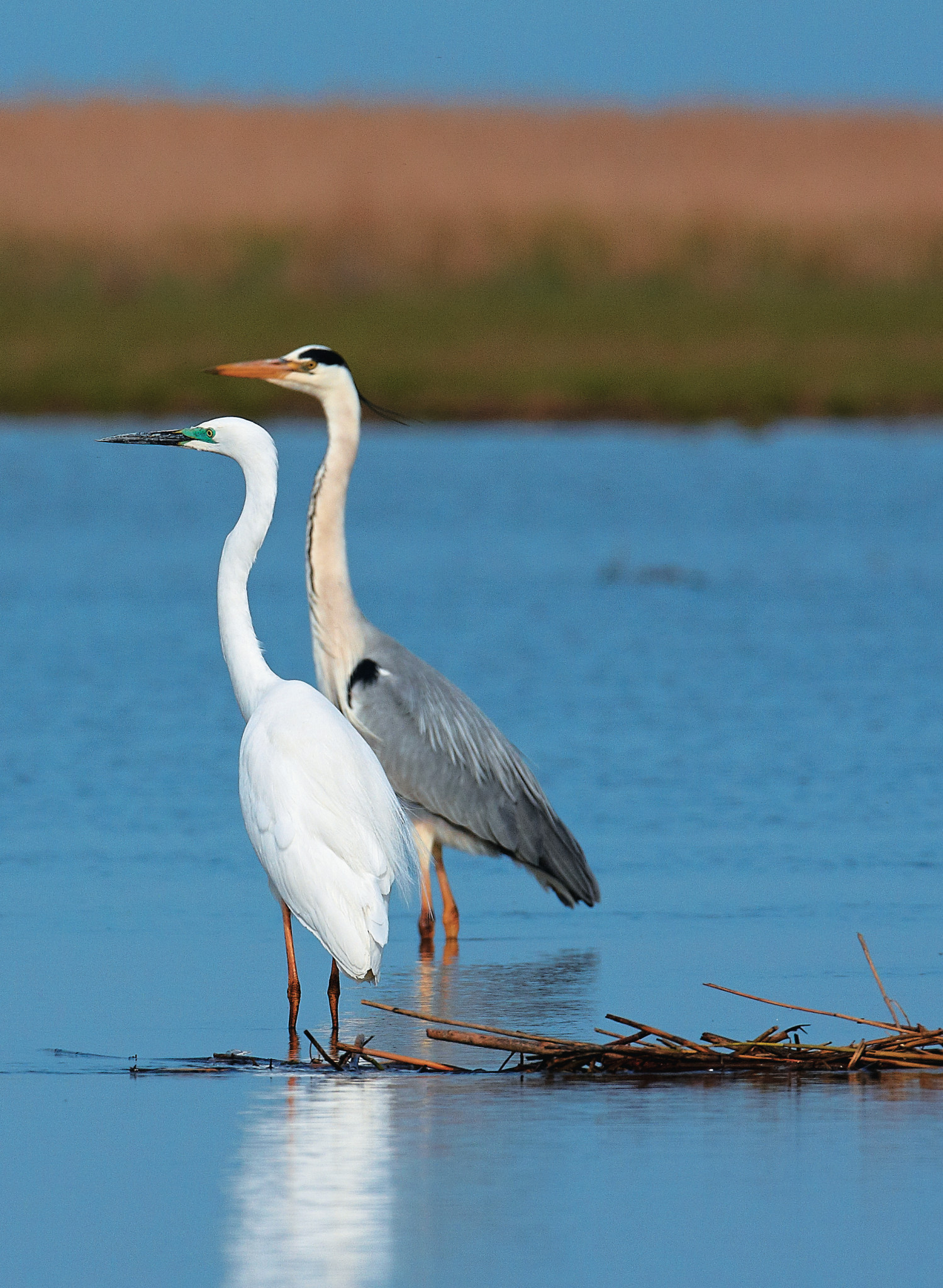 История про цапель-рыбаков началась ещё зимой, когда, построив скрадок на дереве (о всевозможных таких устройствах я писал в статье «В видоискателе — животный мир», см. «Наука и жизнь» № 4, 2021 г.) в самом центре цапельной колонии, я стал очевидцем таинства появления и 131развития новых жизней этих замечательных птиц. Благодаря тому, не побоюсь сказать, фантастическому укрытию появились и фотографии, и новые знания о серых цаплях. И вот, изучая их поведение в гнездовой колонии и видя, что родители регулярно прилетают к вечно голодным цаплятам с добычей, я наметил новую цель: подсмотреть, как же они достигают такой результативности. Через некоторое время на водном перекате озера Маныч-Гудило в Калмыкии коллективом единомышленников было сооружено специальное укрытие, откуда и велось затем наблюдение за невероятным зрелищем.