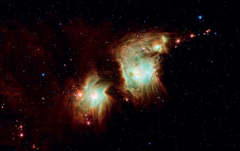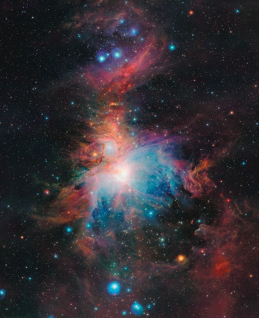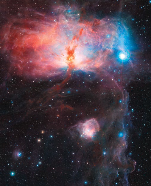 Облака Ориона — один из наиболее активных близлежащих регионов образования звёзд, видимых на ночном небе. Процессы, происходящие в облаках, разогреваемых рождёнными звёздами, приводят к их излучению во всех диапазонах электромагнитных волн, изучаемому астрономами. Комплекс Ориона включает в себя множество интереснейших объектов: протозвёздные и протопланетные диски, коричневые карлики и молодые звёзды, всевозможные туманности, газовые и пылевые облака, турбулентные потоки вещества. В частности, совсем недавно с помощью телескопа VISTA (ESO, Чили) астрономы обнаружили там так называемые объекты Хербига—Аро — яркие пятна туманностей, связанные с новорождёнными звёздами. Они образуются, когда узкие струи частично ионизированного газа, выбрасываемого звёздами, сталкиваются с соседними облаками газа и пыли со скоростью нескольких сотен километров в секунду.