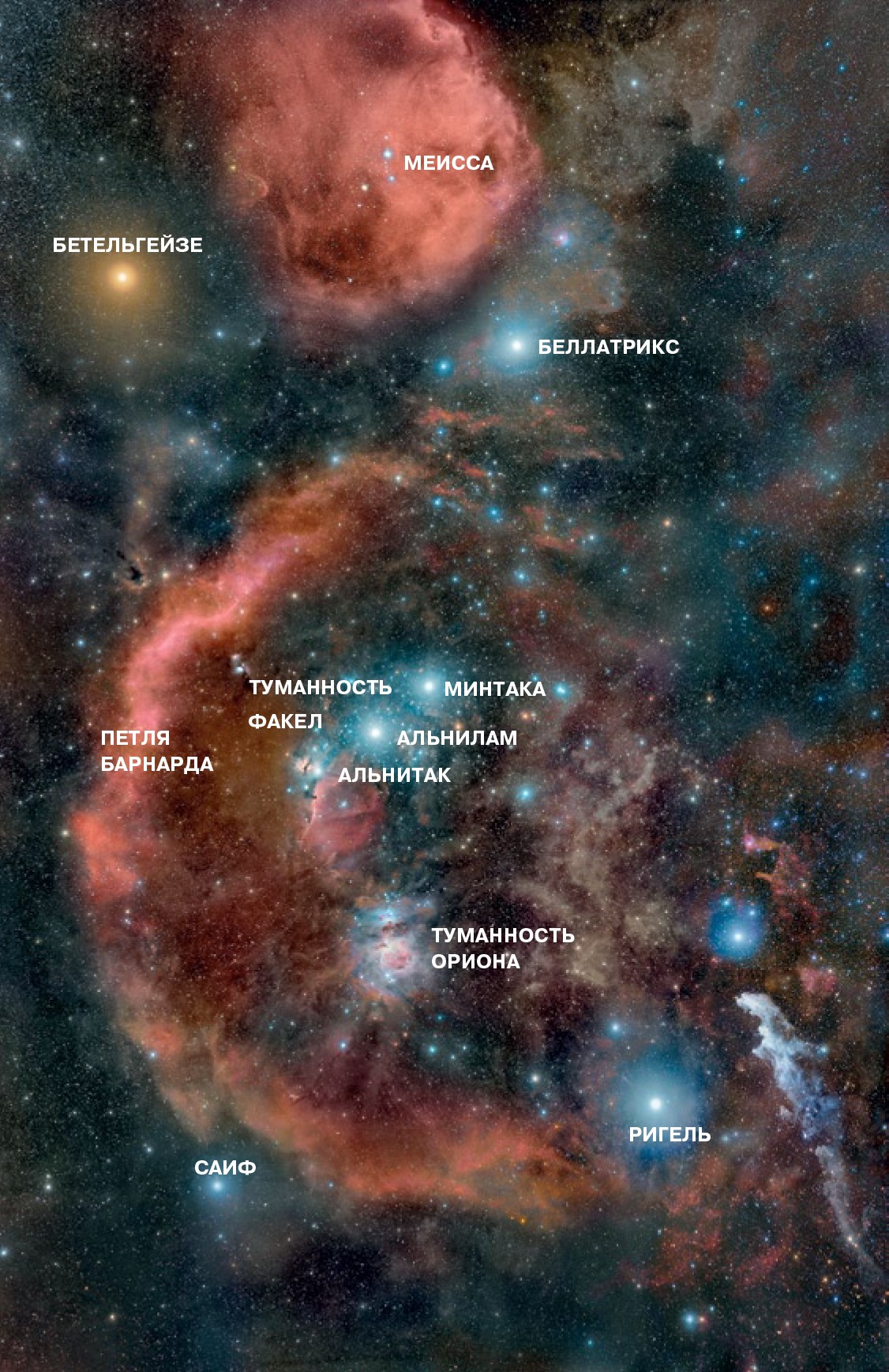 Зима — удачное время для наблюдений созвездий, окружающих созвездие Ориона, одно из самых приметных и узнаваемых на нашем небе. В полночь на московском небе высоко над горизонтом поднимутся Возничий, Персей и Близнецы, под которыми расположатся Телец и сам Орион вместе с Большим и Малым Псами, преследующими Единорога. Все эти созвездия содержат много интересных для наблюдений объектов, но сейчас мы поговорим об Орионе.