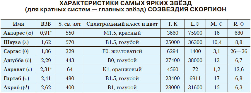 Акраб (β Sco) — сложная система из шести компонентов. Однако при наблюдении в небольшой телескоп она видна как двойная система из двух самых ярких и массивных компонентов β1 и β2 с расстоянием между ними 13,5″.