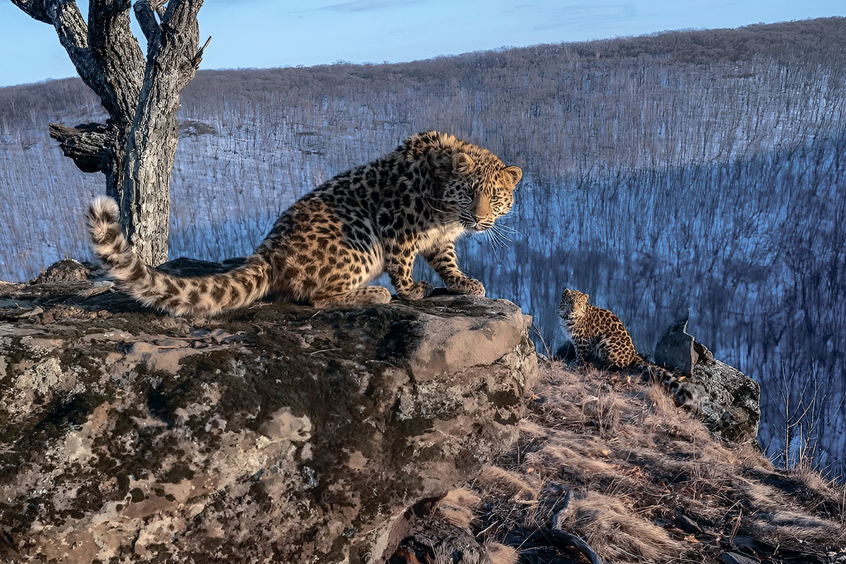 С фотоловушками наблюдать за дикими животными стало намного проще. Они помогают заглянуть в «личную жизнь» многих скрытных и редких видов — масса фактов об их биологии наверняка так и оставалась бы неизвестной, если бы исследователи лично сидели в засадах с фото- и видеоаппаратурой. Но фотоловушка сама по себе никакого волшебства не совершает. Нужно понимать, куда и как её ставить, то есть уже заранее много знать о поведении животного: какие места оно любит, какие нет, откуда может появиться перед камерой, чем будет заниматься и т. д. Кроме знаний, нужно запастись терпением — у животных своя жизнь, и выступления перед фотоловушками не обязательно входят в их планы. Но если всё сделано правильно, то можно рассчитывать на действительно удачный кадр — такой, какой удалось сделать известному фотографу Сергею Горшкову в национальном парке «Земля леопарда». Фото двух котят дальневосточного леопарда, которые смотрят прямо в объектив, получилось с помощью фотоловушки, спрятанной среди деревьев на вершине горы. Место выбрано не случайно — возвышенности с обзором одновременно и безопасны, и помогают изучить большую территорию вокруг; то и другое важно для подрастающих неопытных хищников.