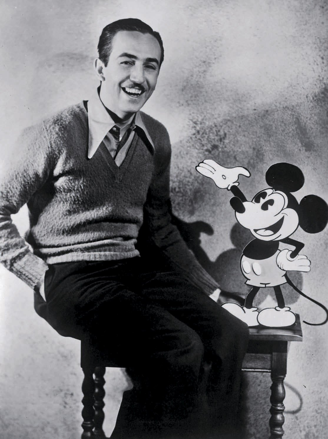 Однако все это будет позже, а пока Уолт и его старший брат Рой (позже — видный кинофинансист) решили сосредоточиться на производстве полностью анимированных фильмов. Первым успехом стал «Кролик Освальд» — придуманный Диснеем и мультипликатором Эбом Айверксом сериал про антропоморфного кролика, выпуском которого занималаcь компания Universal. Вскоре братья поплатились за невнимательное чтение трехстороннего контракта и лишились прав на свое произведение. Однако Уолт придумал нового героя — мышонка, которого Дисней сперва хотел назвать Морти. Правильное имя подсказала молодая жена Лиллиан, а Микки Маус стал героем мультфильма «Пароходик Вилли». Формально дебютом был «Безумный самолет», но этот мультфильм был