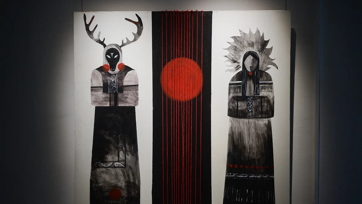 На дне пятилитровых банок с черными крышками видны серые и коричневые камни, утопающие в голубоватом натуральном мохе. Неискушенному глазу ясно не сразу, что все содержимое собрано и привезено в Москву с берегов арктических морей. Автор инсталляции художница Вера Петрова точно знает, где собирала мох, лежащий в каждой из девяти банок. Уроженка Якутии, пребыванию дома она предпочитает посещение разных труднодоступных мест, от Чукотки до Мурманской области. Из каждого северного уголка везла она природный материал для своих работ, часть из них вошла в экспозицию «Исследователь и художник: искусство в экспедиции», посвященную всесторонним исследованиям российской Арктики.