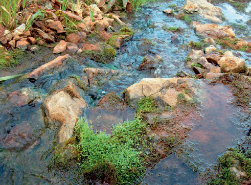 Если эти исследователи правы, то современные геотермальные водоемы, разбросанные по всему миру, от Патагонии до Камчатки, представляют собой древнейшие из известных нам экосистем. В самых горячих из них, где температура 40–45°C и выше, жизнь представлена почти исключительно микроорганизмами. Там, где вода прохладнее, колеблется круглый год в диапазоне от 20 до 40 градусов, все гораздо веселее. В таких водоемах можно встретить рачков, личинок стрекоз и мошек, моллюсков, рыб и даже некоторые виды водяных змей. Внешне большинство подобных местообитаний выглядят не очень эффектно: чаще всего это небольшие и неглубокие лужи или вытекающие из-под земли родники. Характерной особенностью термальных водоемов являются пышные пестроцветные ковры, образованные скоплениями бактерий и сине-зеленых водорослей (так называемые водорослево-бактериальные маты), питающие растительноядных животных (а те, в свою очередь, хищных).