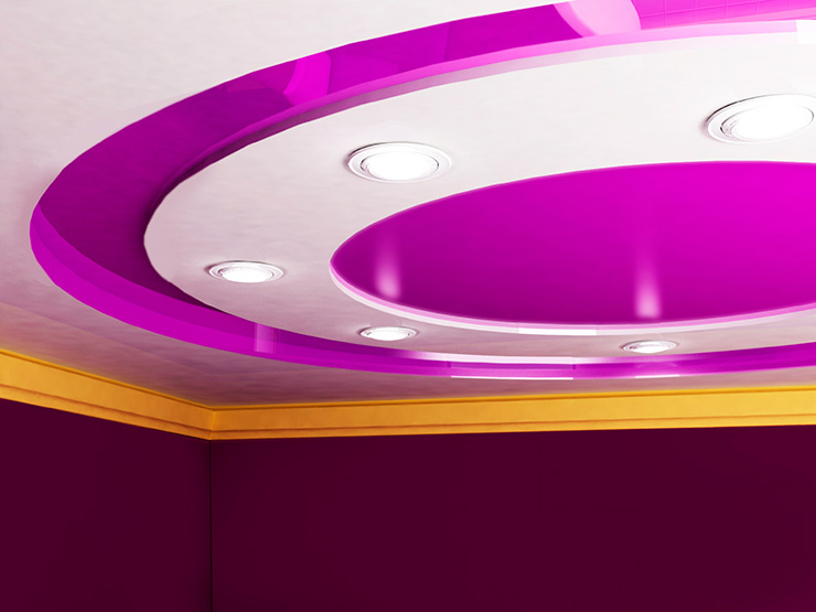 Сложной формы перегородки из гипсокартона с полками, многоуровневый потолок с RGB-подсветкой, которая переливается всеми цветами радуги, - всё это уже вышло из моды и сегодня выглядит как привет из нулевых. Ничего против подсветки как таковой я не имею, но она должна быть однотонной, а опция rgb нужна только для выбора оттенка. Продолжая тему гипсокартонных конструкций: неуместны полукруглые лепестки из гипсокартона на потолке с точечными светильниками или вокруг центральной люстры. Круги возможны только тогда, когда это отвечает архитектуре. Необходимо отталкиваться от геометрии интерьера.