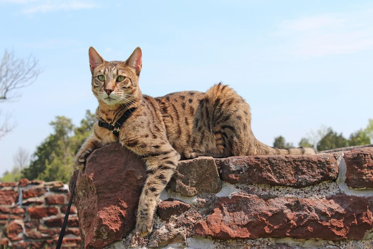 Эта порода представляет собой гибрид дикого африканского сервала и домашней кошки — обычно для выведения используются кошки бенгальской породы.
