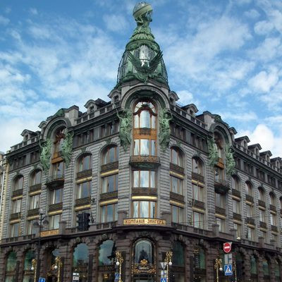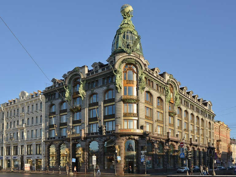 Чуть дальше — Дом Зингера, принадлежавший известной компании-изготовителю швейных машин. В годы Первой мировой войны там находилось посольство США, с 1938 года — живет «Дом книги». Последние пять этажей здания занимает штаб-квартира «ВКонтакте» — и там просто потрясающая смотровая площадка, о которой мало кто знает. Но договариваться о визите надо заранее.