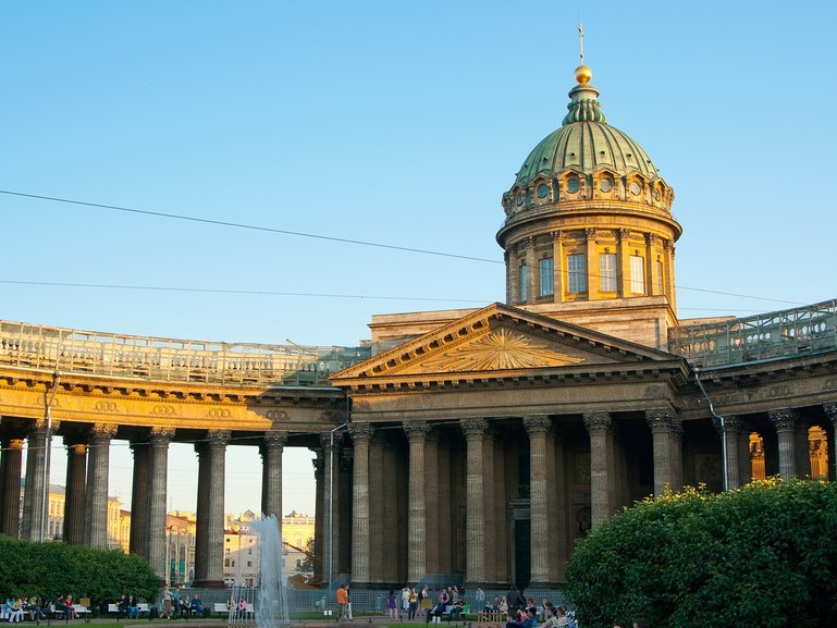 Пройдите через памятник Николаю I на Исаакиевской площади к набережной реки Мойки. Дойдите до Строгановского дворца, а потом заверните направо — по Невскому проспекту дойдете до Казанского кафедрального собора. Он построен Андреем Воронихиным по образу и подобию собора Святого Петра в Ватикане. Там хранится список чудотворной Казанской иконы Божией Матери. А после войны 1812 года похоронен полководец Михаил Кутузов.