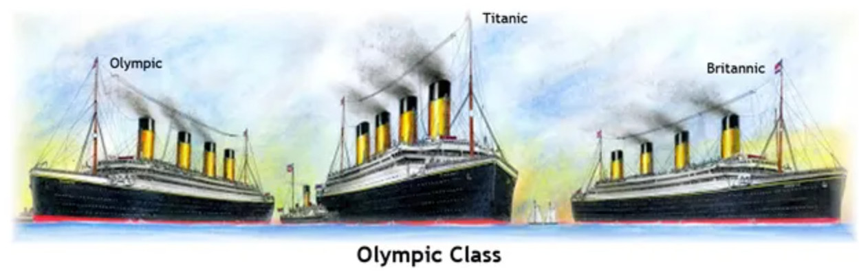 Это первый трансатлантический лайнер класса «Олимпик», два другие - «Титаник» и «Британник». Внешне они мало чем отличались, так что их фотографии до сих пор путают.