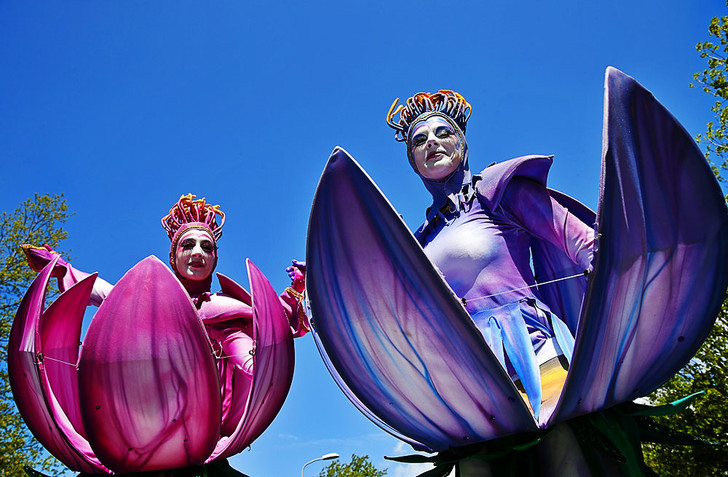 — В этом году (2016-м. — Прим. Vokrugsveta.ru) он длится с 24 марта по 16 мая. В саду распускается примерно семь миллионов цветов: тюльпаны, нарциссы, гиацинты, крокусы, мускари… Тюльпанов больше всего — свыше четырех миллионов штук, около 800 сортов. Вообще, тюльпан живет 3–4 недели. Поэтому мы чередуем ранние и поздние сорта. Ранние вянут — эстафету подхватывают поздние. И так все восемь недель парк цветет.